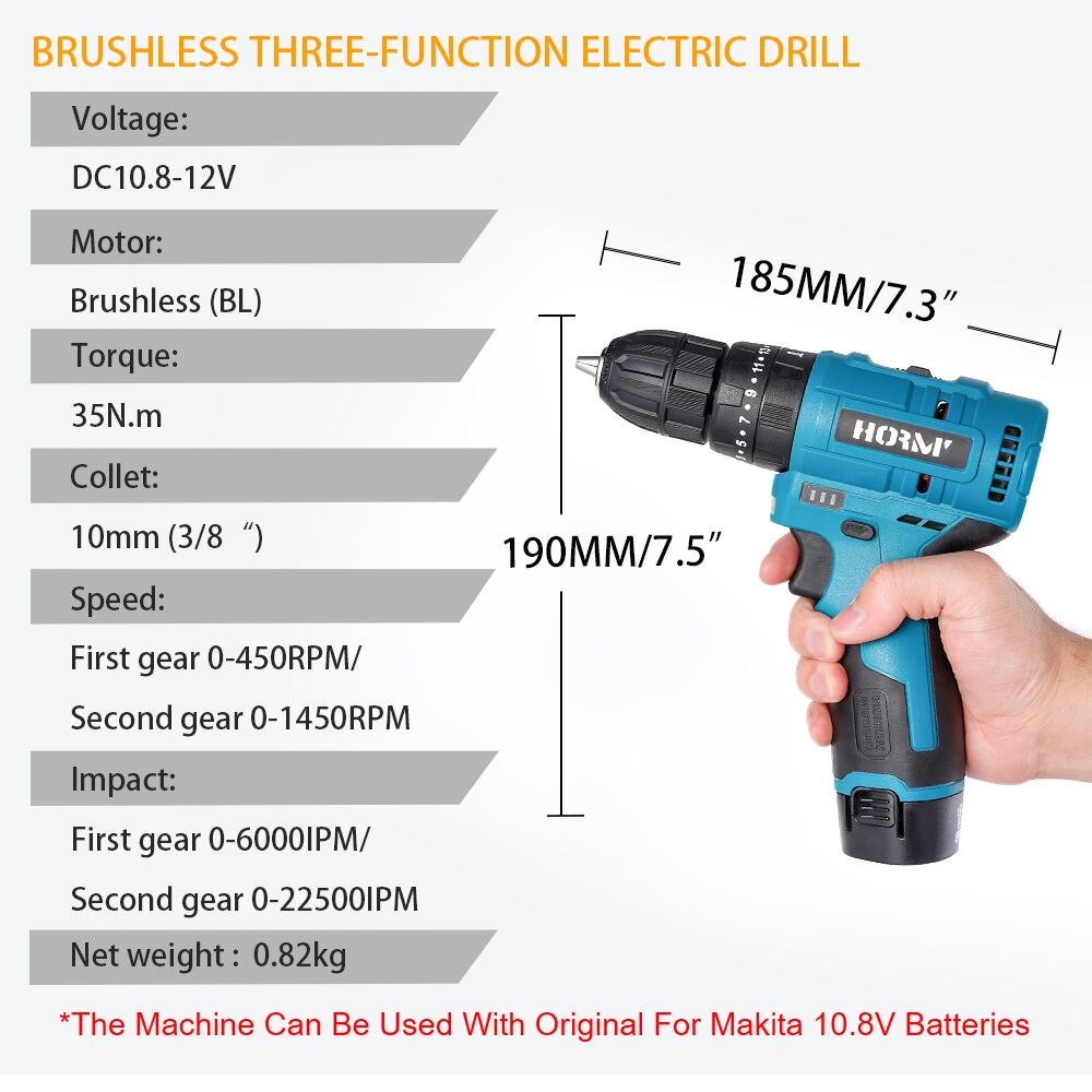ブラシレス電動インパクトドリル,2スピード,3 in 1,ドライバー,木工ツール,マキタバッテリー10.8V