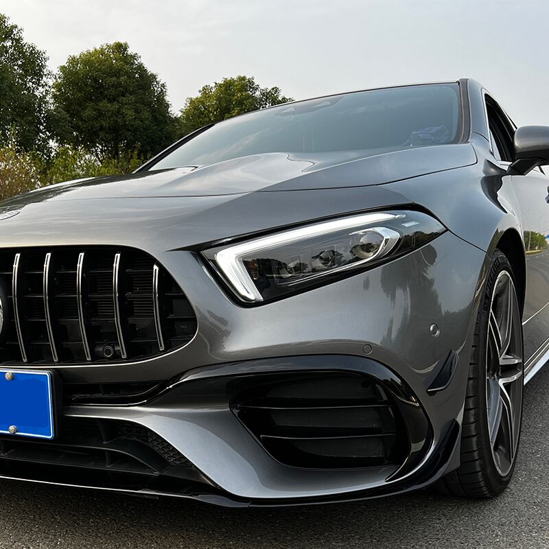 クラスのバンパートリム,光沢のある黒のカナードステッカー,w177,a45,2019 2020 2021