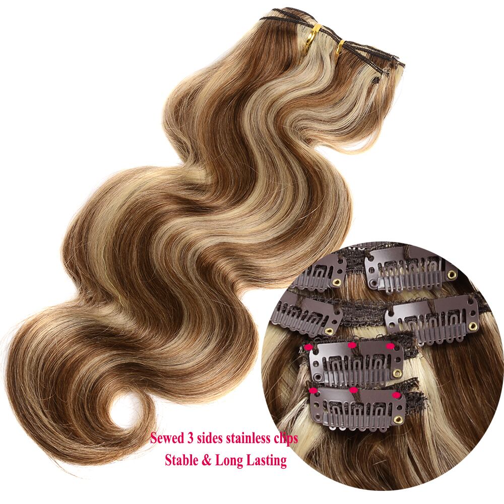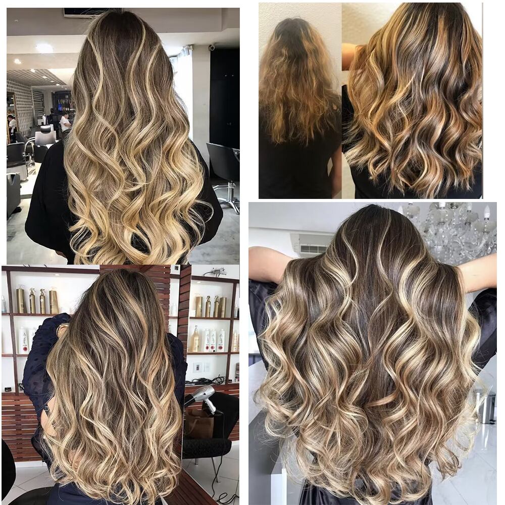 自然な髪のエクステンション,すべての頭にクリップされたヨーロピアンヘア,ブロンド,ウェーブ,160g, 200g