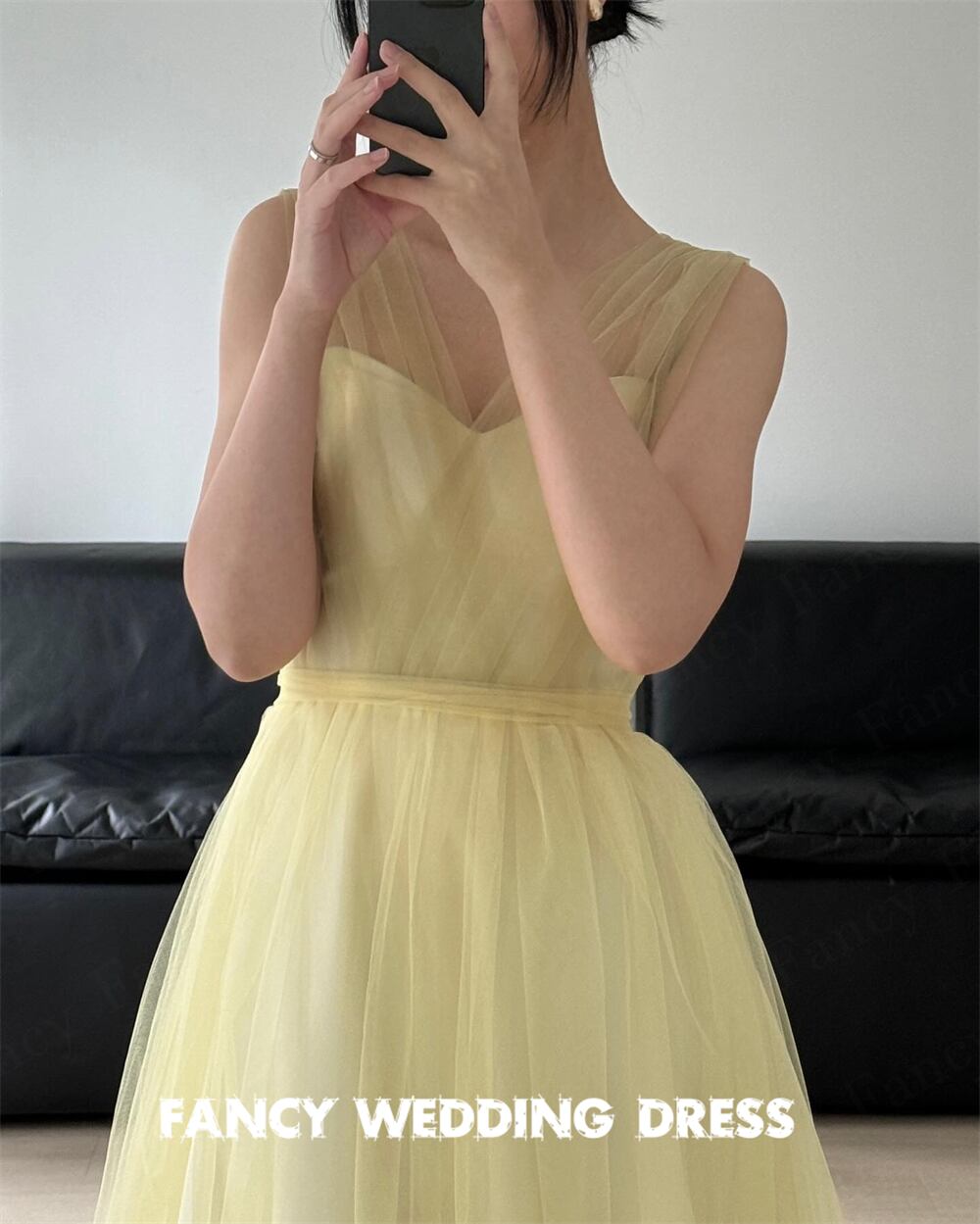 ラインのウェディングドレス,妖精の豪華な衣装,軽い黄色,チュール,バックコルセット,写真撮影,韓国