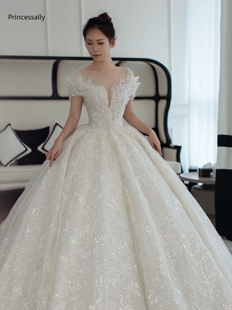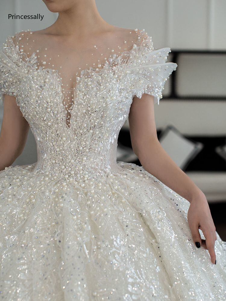 花嫁のためのビーズの贅沢なボールガウン,女性の結婚式のドレス,ダブル,新しいコレクション2020