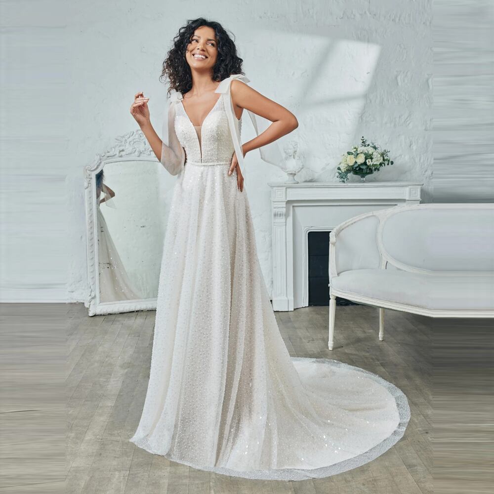 魅惑のVネックで挑発的な裸の背中を演出する、エレガントなウェディングドレス。セクシーなオープンバックが華やかさを引き立て、あなたの特別な日を輝かせます。一生の思い出に残る美しい装いをお楽しみください。window.adminAccountId=253513354;