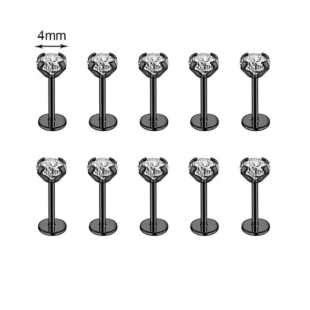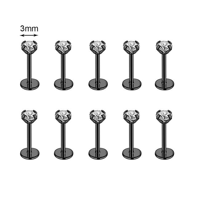 Zs 316lステンレス鋼ピアスセット、男性用、czクリスタル、耳珠、ヘリックス、ラレット、リップ、16g、18g、6mm、8mm、10mm、1ロット