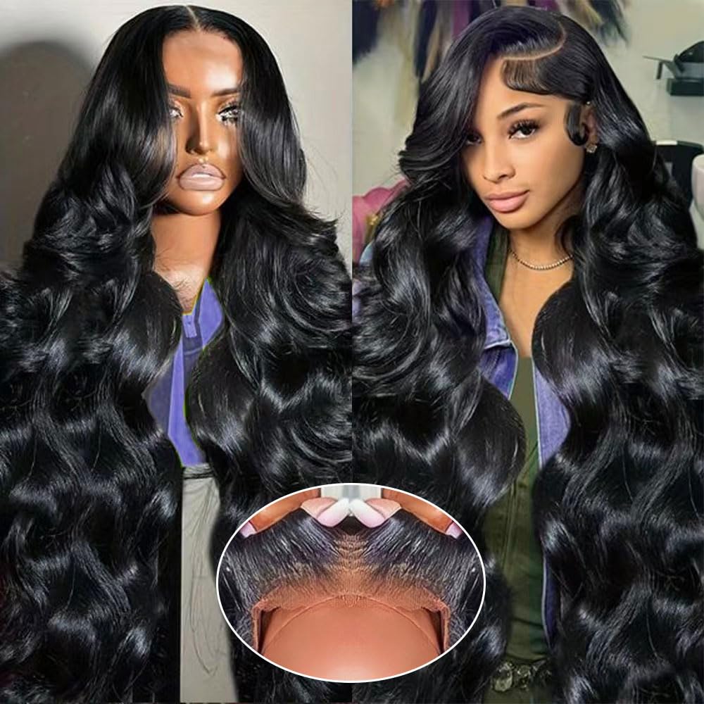 ボディウェーブウィッグ,女性用ナチュラルヘアウィッグ,透明レース,ベビーヘアで事前に抜いた,ナチュラルカラー,13x4, 13x4