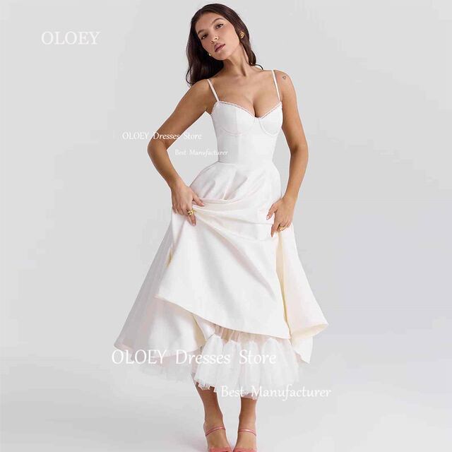 Oloey-韓国風のシンプルサテンウェディングドレス,スパゲッティストラップ,サテンの写真撮影,ブライダルガウン,コルセットバック,足首の長さ,カスタ